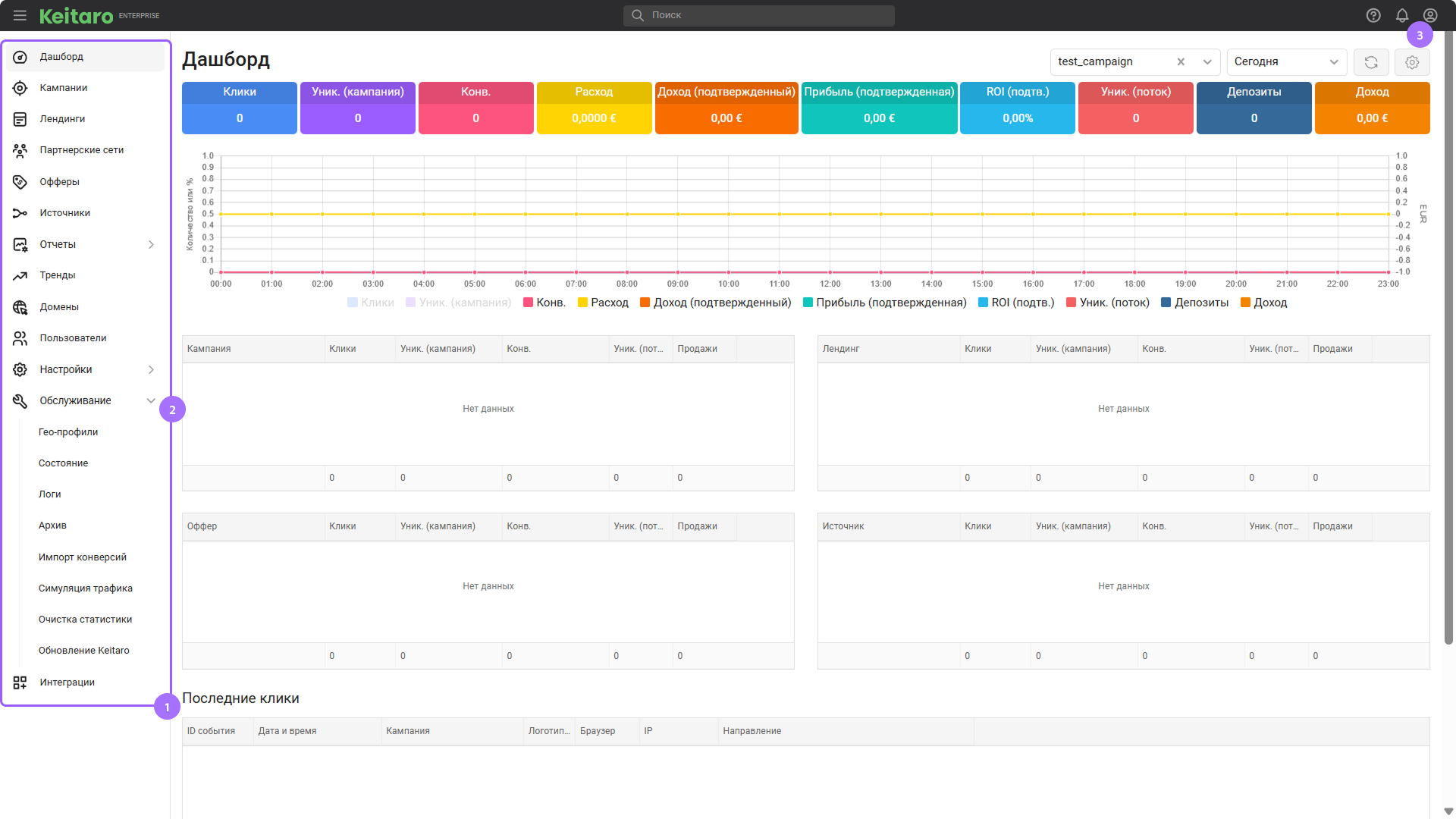 • Кампании — базовая сущность трекера. На базе кампаний отслеживается и распределяется трафик, отслеживается статистика. Создание и настройка кампании для работы с трекером — обязательное действие.